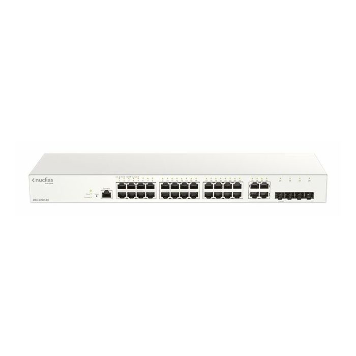 Nuclias smart upravljivi switch, koji ima 24 gigabitna porta i 4x 1G Combo 1000BaseT/SFP porta. Switch se odlikuje cloud upravljanjem sa bilo koje lokacije a uz switch dolazi i besplatna jednogodišnja licenca za cloud upravljanje. Nakon isteka licence možete ga koristiti kao obični upravljivi switch ili dokupiti licencu za nastavak upravljanja kroz cloud. Pored toga switch ima i sljedeće funkcionalnosti: D-Link Nuclias Cloud Management- Zero-touch deployment- Over-the-air firmware updates through the cloud- Voice VLAN- Half-/Full-Duplex, auto-negotiation, Auto MDI/MDIX- EEE 802.3x Flow Control- Fanless- 802.1w Rapid Spanning Tree (RSTP)- 802.3ad Link Aggregation- IGMP Snooping- Configurable VLAN groups 256 Osnovne karakteristike: Tip preklopnika: rackmount Konstrukcija: fiksna konfiguracija Broj priključaka: 24 Units: 1U Upravljanje: managed Layer: 2
