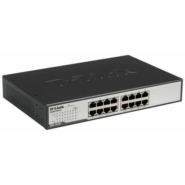 DGS-1016D je SOHO neupravljivi preklopnik, metalnog kućišta , namjenjen manjim mrežama i radnim grupama.nbsp;gigabitnih E thernet portova posjeduju svojstvo automatske detekcije UTP kabela, omogućavajući rad uz korištenje straight-through ili crossover kabela. Uz to, preklopnik testira ispravnost kabela, signalizirajući mogući prekid. Koristi interno napajanje, hladi se dvama bočno ugrađenim ventilatorima. Montaža može biti zidna ili stolna. Zbog desktop dimenzija koriste se duži metalni nosači pri ugradnji u 19" komunikacijski ormar. Osnovne karakteristike: Tip preklopnika: desktop (mogućnost ugradnje u Konstrukcija: fiksna konfiguracija Broj priključaka: 16 Units: 1U Upravljanje: unamanaged Layer: 2