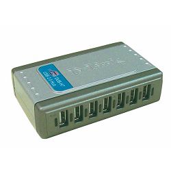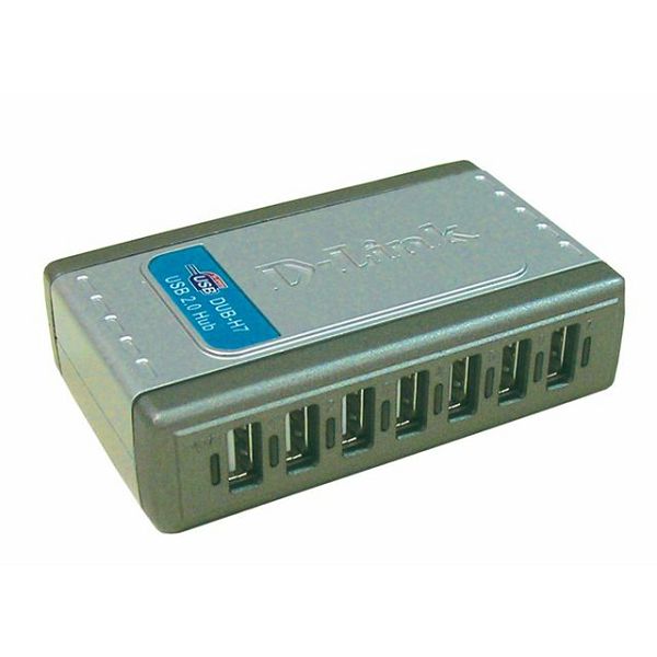 DUB-H7 je 7-portni USB 2.0 hub koji omogućava priključivanje usb uređaja (tipkovnica, miš, web kamera, digitalni zvučnici, digitalna kamera, pisač, skener). Napaja se vanjskim AC ispravljačem (posebno važno kod priključenja većeg broja USB potrošača). Za manje USB potrošače AC adapter nije potreban (tipkovnica, miš). Konektori: Konektori: USB 2.0