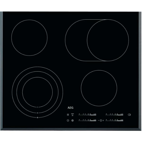 HK654070FB Električna ploča AEG Vrsta ploče: Električna s keramičkim staklom Stop & Go funkcija za kraći prekid rada Timer Automatsko brzo zagrijavanje Zvučni signal s opcijom isključivanja Funkcija zaključavanja, zaštita za djecu Blokada tipki za upravljenje Laka instalacija zahvaljujući sklopnom snap-in sistemu Snaga, W / promjer, mm - sprijeda lijevo: 800/1600/2300W/120/175/210mm Snaga, W / promjer, mm - sredina sprijeda: 0W/0mm Snaga, W / promjer, mm - sredina straga: 0W/0mm Snaga, W / promjer, mm - lijevo straga : 1200W/145mm Snaga, W / promjer, mm - sprijeda desno: 1200W/145mm Snaga, W / promjer, mm - desno straga: 1500/2400W/170x265mm Dimenzije, mm: 590x520 Ugradbene dimenzije, mm: 38x560x490 Maksimalna priključna snaga, W: 7100 Oznake na upravljačkoj ploči: elektronske, na staklu LED boja: crvena Funkcija kontrola: 3 koraka rezidualne topline, zvučni signal, automatsko zagrijavanje, sigurnosno zaključavanje za zaštitu djece, tajmer za odbrojavanje vremena, eko tajmer, funkcija zaključavanja, minutni podsjetnik, isključivanje zvuka, Stop&go funkcija, tajmer Duljina kabela, m: 1.5 Indikator preostale topline: digitalni, 7 segmenata