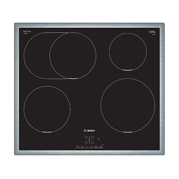 Bosch PIF645BB5E Indukcijska ploča za kuhanje, 60 cm 1 polje za kuhanje može se proširiti u oval Prednji lijevi: 180 mm, 1.8 KW (maks. snaga 3.1 KW) Stražnji lijevi: 180 mm, 280 mm, 1.8 KW (maks. snaga 3.1 KW) Stražnji desni: 145 mm , 1.4 KW (maks. snaga 2.2 KW) Prednji desni: 210 mm, 2.2 KW (maks. snaga 3.7 KW)