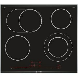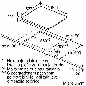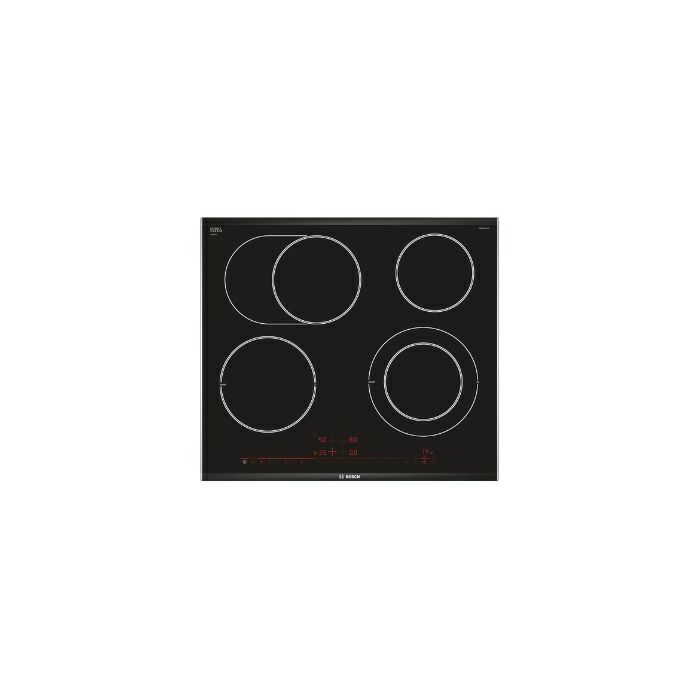 PKN675DP1D Serie 8 Staklokeramička ploča za kuhanje, 60 cm 4 polja za kuhanje HighSpeed, od kojih 1 dvokružno 1 proširivo u oval Zona za održavanje topline Izbrušeni prednji rub, ukrasne letvice sa strane Podešavanje snage: 17 stupnjeva ReStart funkcija Digitalni displej TopControl Elektronički programski sat s funkcijom isključivanja i opomenom za svako polje za kuhanje Elektronički programski sat Prikaz potrošnje energije HighSpeed staklokeramika PowerBoost funkcija Sigurnosno isključivanje Dječija sigurnosna brava Zaštita kod brisanja Indikator uključivanja Digitalni dvostupanjski indikator preostale topline za svako polje za kuhanje Glavni prekidač Dimenzije (ŠxD): 606 mm x 527 mm Ugradbene dimenzije (VxŠxD): 44 mm x 560 mm x 500 mm Min. debljina radne površine: 20 mm Priključna snaga: 8,6 kW