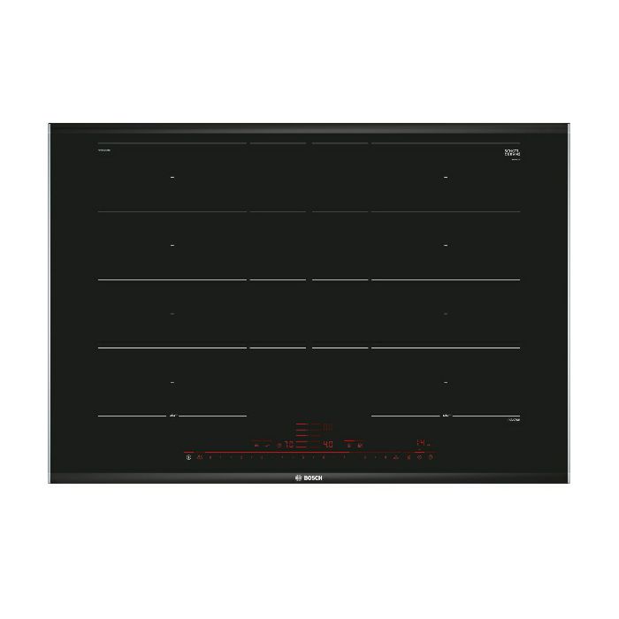 Bosch PXY875DC1E Indukcijska ploča za kuhanje, 80 cm 2 Flex polja za kuhanje: upotrijebite posude bilo kojeg oblika ili veličine bilo gdje unutar zone duge 40 cm. Prednji lijevi: 200 mm, 230 mm, 2.2 KW (maks. snaga 3.7 KW) Stražnji lijevi: 200 mm, 230 mm, 2.2 KW (maks. snaga 3.7 KW) Stražnji desni: 200 mm, 230 mm , 2.2 KW (maks. snaga 3.7 KW) Prednji desni: 200 mm, 230 mm, 2.2 KW (maks. snaga 3.7 KW) DirectSelect Premium: izravan, jednostavan odabir željene zone kuhanja, snage i dodatnih funkcija: izravno upravljajte snagom putem izuzetno velike osvijetljene dodirne trake (nevidljiva kad je isključena). 17 stupnjeva: precizno prilagodite toplinu sa 17 razina snage (9 glavnih razina i 8 srednjih razina). Zona za održavanje toplote: održavajte jela toplim na unaprijed zadanoj niskoj razini snage. Elektronički programski sat s funkcijom isključivanja i opomenom za svako polje za kuhanje: isključuje zonu za kuhanje po završetku postavljenog vremena (npr. za kuhana jaja). Elektronički programski sat: alarm se oglašava na kraju postavljenog vremena (npr. za tjesteninu). Brojač vremena kuhanja: pokazuje koliko je vremena prošlo od pokretanja odbrojavanja (npr. za krumpir). Funkcija PowerBoost za sva polja za kuhanje: brže prokuhajte vodu zahvaljujući 50% više energije nego na najvišoj standardnoj razini. PanBoost - PowerBoost funkcija za tave Zone za kuhanje automatski će se spojiti ili odvojiti ovisno o obliku i veličini posuđa. MoveMode (3 razine) Automatski prijenos podešavanja: kada premjestite lonac u drugu zonu za kuhanje, prenesite sve prethodne postavke u novu zonu pritiskom na gumb. QuickStart funkcija ReStart funkcija PerfectFry senzor s 5 postavka temperature: sprječava zagorijevanje automatskom regulacijom temperature integriranog senzora. Izbrušeni prednji rub, ukrasne letvice sa strane Dimenje proizvoda (VxŠxD mm): 51 x 816 x 527 Potrebna veličina niše za ugradnju (VxŠxD mm) : 51 x 750 x (490 - 500) Min. debljina radne površine: 16 mm Priključna snaga: 7.4 KW Funkcija PowerManagement: ograničite maksimalnu snagu ako je to potrebno (ovisi o zaštiti osigurača električne instalacije). Priključni kabel: 1.1 m, kabel uključen Pojedini modeli indukcijskih ploča za kuhanje imaju tehničko ograničenje u vidu minimalnog promjera posude za kuhanje. Navedenu karakteristiku molimo provjeriti u uputama za rad ili upitom korisničkoj podršci.