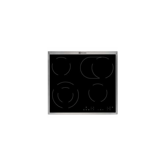 EHF6346XOK Električna ploča Electrolux Staklokeramika Dvostruka zona Ovalna zona Inox rub Touch kontrole Grijaće plohe: - 750/2200W/120/210mm - 1200W/145mm - 1200W/145mm - 1500/2400W/170x265mm Stop+Go funkcija Indikatori preostale topline Dimenzije otvora za ugradnju: 560 x 490 mm Dimenzije ploče: 576 x 516 mm