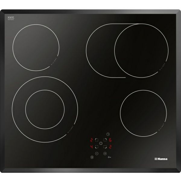 Hansa BHC66706 Hansa staklokeramička ploča sa kontrolama na dodir 4 zone za kuhanje Integrirani senzor upravljačke ploče Timer Indikator zaostale topline zone za kuhanje Zaključavanje ploče Dvije proširene zone, jedna ovalna, jedna kružna Automatic boil Temperature regulator Ploča: - električna isijavajuća zona 14.5 cm (1.2kW) - električna isijavajuća zona 14.5 cm (1.2kW) - dvostruka električna isijavajuća zona 21/12 cm (0.75/2.2kW) - dvostruka električna isijavajuća zona 17/26,5 cm (1.4/2,2kW) Dimenzije: 575 x 518 mm