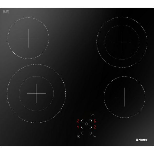 Hansa BHC96508 Hansa staklokeramička ploča sa kontrolama na dodir 4 zone za kuhanje Integrirani senzor upravljačke ploče Timer Indikator zaostale topline zone za kuhanje Zaključavanje ploče Proširena zone Automatic boil Temperature regulator Ploča: - električna isijavajuća zona 14.5 cm (1.2kW) - električna isijavajuća zona 14.5 cm (1.2kW) - dvostruka električna isijavajuća zona 21/12 cm (0.75/2.2kW) - dvostruka električna isijavajuća zona 18/12 cm (1.7/0,7kW) Dimenzije: 575 x 518 mm