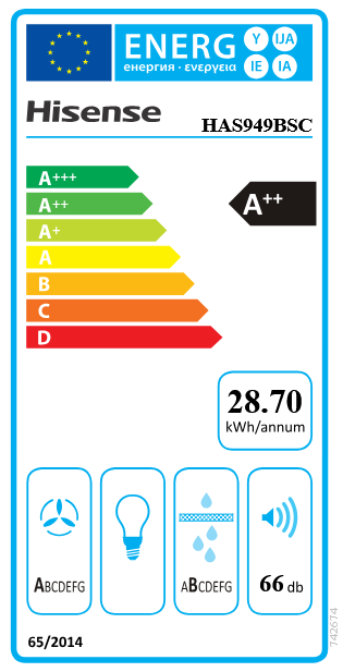 Energetski razred: A++ Brušeni rub Razred učinkovitosti filtriranja masnoće: B Razred učinkovitosti protoka zraka: A Maksimalni protok zraka kod odvodnje zraka: 550 m3/h Protok zraka kod odvodnje zraka, razina 1: 245 m3/h Funkcija PowerBoost Upravljanje na dodir Timer funkcija Broj brzina: 9 Bridge funkcija: Fleksibilna zona Način rada: odvodnja ili recirkulacija zraka Brzo kuhanje Gentle Melt Auto Start Aluminijski filter za masnoću Child Lock Indikator zamaštenja filtera Razina buke (max.): 66 dB(A) Širina proizvoda: 830 mm Visina proizvoda: 230 mm Dubina proizvoda: 520 mm Neto težina proizvoda: 19 kg Pojedini modeli indukcijskih ploča za kuhanje imaju tehničko ograničenje u vidu minimalnog promjera posude za kuhanje. Navedenu karakteristiku molimo provjeriti u uputama za rad ili upitom korisničkoj podršci.