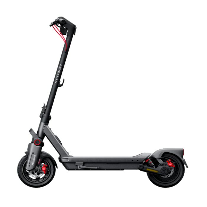 Vozač Minimalna dob 16+ godina Maks. težina vozača 130kg (285 lbs) Dimenzije i težina Dimenzija proizvoda – Otklopljeno1218 × 590 × 1299mm (48 × 23.2 × 51.1 in) Dimenzija proizvoda – Sklopljeno1218 × 590 × 592 mm (48 × 23.2 × 23.3 in) Neto težina24.6 kg (53.6 lbs) Domet Teoretski domet 80km Raspon pri maks. dometuDo 65km (40 milja) Parametri proizvoda BrzinaDo 25 km/h Apsorpcija udara Prednji dvostruki hidraulički ovjesi i stražnji dvostruki podesivi hidraulički ovjesi VodootpornostIPX6 kućište eKickScootera i IPX7 baterija Baterija Kapacitet baterije 597 Wh Sistem inteligentnog upravljanja baterijom Da Motor Kut penjanja Do to 30% Izlazna snaga 700W Maksimalna snaga 2000W Pogon na kotače Stražnji kotač TCS sustav kontrole proklizavanja Da Kočnica KočnicePrednje i stražnje disk kočnice Svjetla Svjetla Prednje svjetlo (6 W velike snage), “-” dnevno svjetlo i stražnje LED svjetlo Ambijentalno svjetlo Ne Integrirani indikatori smjera Da, sprijeda i straga Stražnje kočiono svjetlo Da Gume Veličina gume – Stražnja279 mm / 11 inch Veličina gume – Prednja279 mm / 11 inch Vrsta guma RideyLONG Samooporavljajuće pneumatske gume bez zračnica Povezivost Analiza pomoću aplikacije Da Bluetooth Da Segway AirLock Da Apple Find My Da Ostale karakteristike Mehanizam preklapanja Jednostavno slaganje (upotreba ruku) Zaslon za informacije Zaslon u boji s prikazom svih informacija Informacije na TFT ekranu TFT u boji (brzina, preostala snaga, načini rada, održavanje, bluetooth veza, pokazivač smjera lijevo/desno) Način vožnje 3 načina vožnje (Eco, Standard, Sport) Certificirano reflektirajuće svjetlo Da (prednje, stražnje i bočno E-MARK reflektirajuće svjetlo)