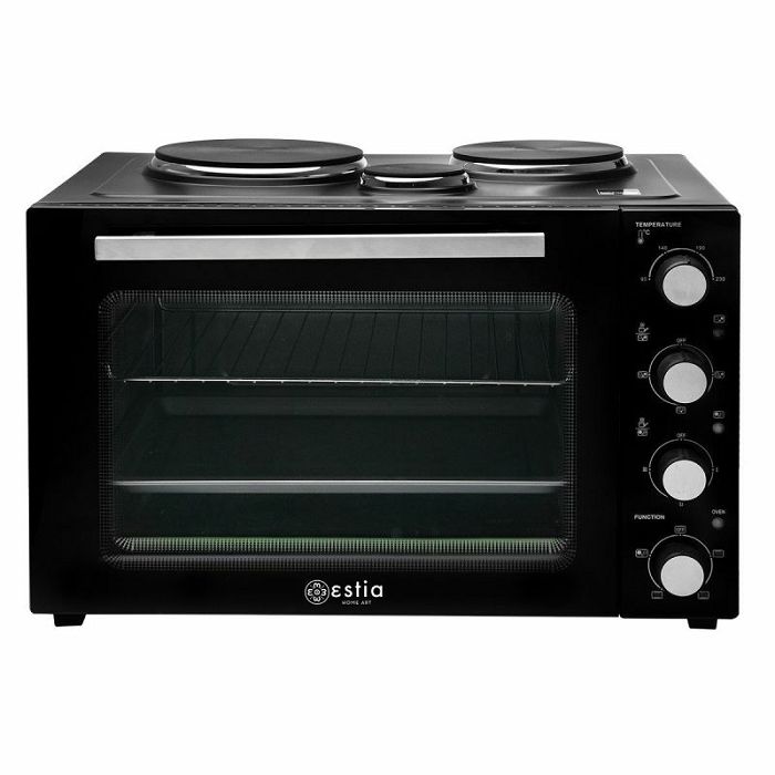 Električna pećnica Compact Cooker, snage 3250 W, idealno je rješenje za brzo i praktično kuhanje. Opremljen je s 3 ploče za kuhanje i velikom pećnicom od 48L koja omogućuje istovremeno kuhanje i uštedu vremena i energije. Uključuje neprianjajuću tavu, roštilj i hvataljke što vaše kuhanje čini još lakšim. Pećnica također ima postavku temperature od 100-250°C, 3 načina otpora (visoki, niski, visoki i niski) i funkciju zraka. Njegov praktičan dizajn čini kompaktni štednjak idealnim izborom za kuhinje s ograničenim prostorom, studentske domove i turističke smještaje. Pećnica - 1800W Velika ploča za kuhanje - 1500W Srednja ploča za kuhanje - 1000W Mala ploča za kuhanje - 450W