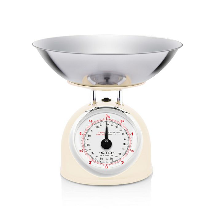 Iako mnoge bake znaju kuhati na oko, kuhinjska vaga oduvijek je bila neizostavan dio svake dobro opremljene kuhinje. Potpuno metalna kuhinjska vaga u retro dizajnu kolekcije ETA STORIO dosta podsjeća na bakinu, ali će brzo postati popularna kod modernih kuhara. Kuhinjska vaga ETA STORIO nudi sve što vam je potrebno za nesmetanu pripremu hrane. Velika posuda od nehrđajućeg čelika kapaciteta 2 litre uvijek je spremna za vaganje do 5 kilograma hrane. Konačnu težinu lako možete očitati na prozirnom brojčaniku s ljestvicom podijeljenom s 25 grama. Volite li kuhati po stranim receptima, cijenit ćete mogućnost očitavanja izvagane količine iu jedinicama lb ili Zahvaljujući izdržljivom potpuno metalnom dizajnu, vagu je lako održavati čistom, a njezine neklizajuće nožice pružaju stabilnost na radnoj površini. Jednostavno ga možete ostaviti izloženog zauvijek - bezvremenski dizajn u tri verzije boja zasigurno će ukrasiti svaku kuhinju.