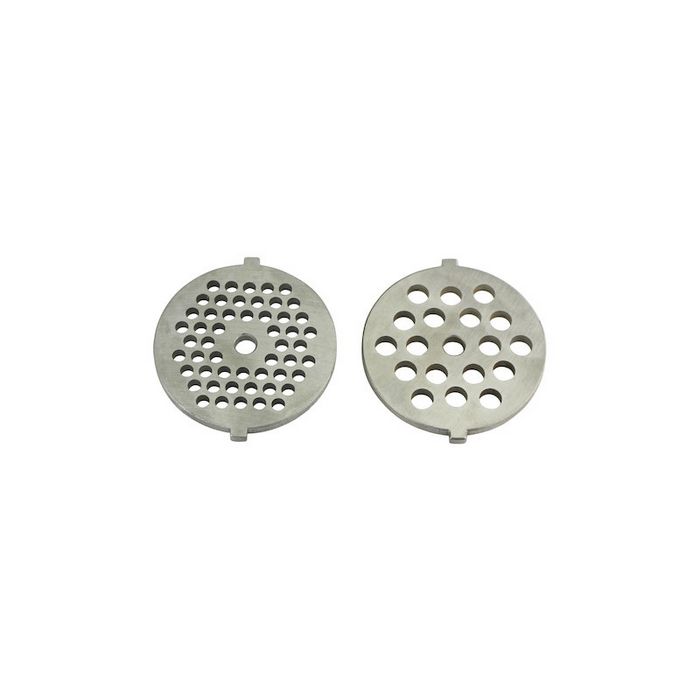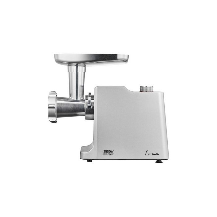 Specifikacije Metalni zupčanici Pribor za rajčice Pribor za kobasice Izliveni nož od nehrđajućeg čelika 2 mjesto rezanja od lijevanog nehrđajućeg čelika 2 brzine + funkcija "Obrnuto" Kapacitet sjeckanja: ≥ 2 kg/min Maksimalna snaga: 2500W Kućište od lijevanog aluminija