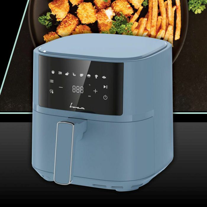 FRITEZA NA VRUĆI ZRAK FRAM FAF-B6BL17SQ, 1700W, KAPACITET KOŠARICE: 5.7L, DIGITALNI ZASLON, METALNA ŠUPLJINA, TEMPERATURA: 80-200°C, TIMER: 60MIN, 8 PRESET PROGRAMA, UKLONJIVA KOŠARA, AUTO-ISKLJUČIVANJE, PLAVA