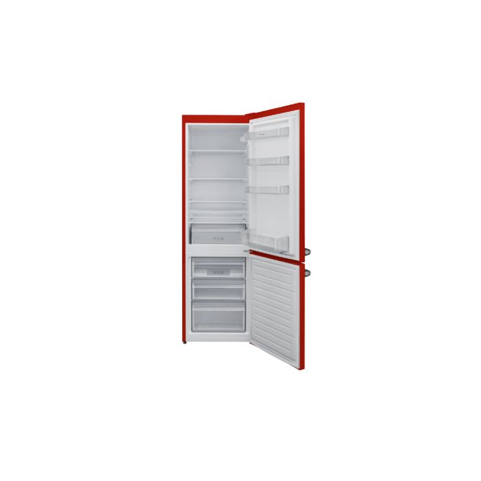 Energetski razred E LessFrost sustav hlađenja Ukupni kapacitet: 268L Kapacitet hladnjaka: 184L Kapacitet zamrzivača: 84L Mehanička kontrola s podesivim termostatom LED svjetlo 3 staklene police hladnjaka 3 ladice zamrzivača Pretinac za voće i povrće Posuda za jaja Posuda za led Kapacitet zamrzavanja: 3,9kg/24h Dimenzije (ŠxDxV): 54 x 59,5 x 170 cm Boja: crvena
