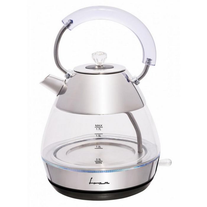 Kapacitet: 1,7 L Rotirajuća baza od 360° Stakleno tijelo Otpornost na nehrđajući čelik Automatsko zaustavljanje Zaštita od rada bez vode Baza s indikatorskim svjetlom Snaga: 1850-2200W