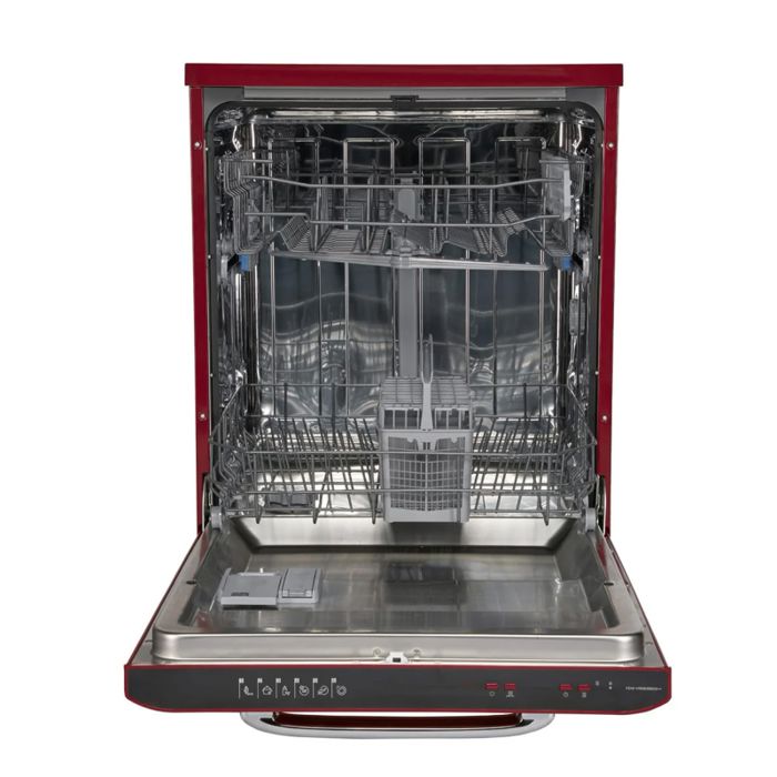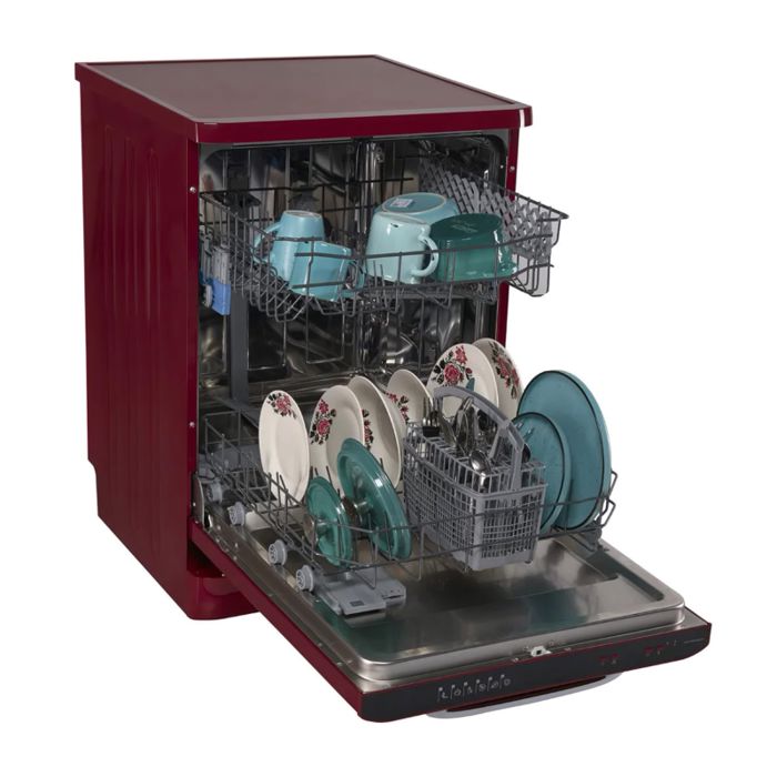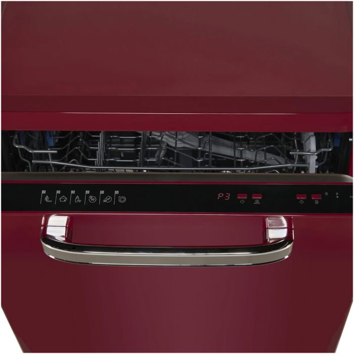 12 setova Energetski razred E Elektroničko upravljanje Prikaži LED 6 programa pranja Brzi program 30' Program higijene 70°C Programabilni početak (1-19H) Pola punjenja Gornja košara podesiva po visini (napunjena) Zaštita od poplava – Aquastop Potrošnja vode: 12L/ciklus pranja Dimenzije (VxDxŠ): 82-85 x 59,8 x 59,8 cm Boja: tamnocrvena