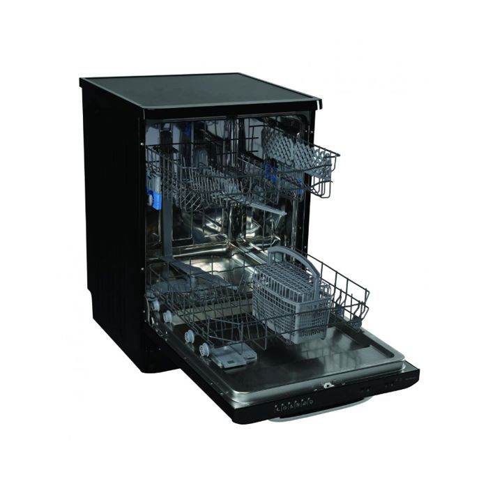 12 setova Energetski razred E Elektroničko upravljanje Prikaži LED 6 programa pranja Brzi program 30' Program higijene 70°C Programabilni početak (1-19H) Pola punjenja Gornja košara podesiva po visini (napunjena) Zaštita od poplava – Aquastop Potrošnja vode: 12L/ciklus pranja Dimenzije (VxDxŠ): 82-85 x 59,8 x 59,8 cm Boja: crna