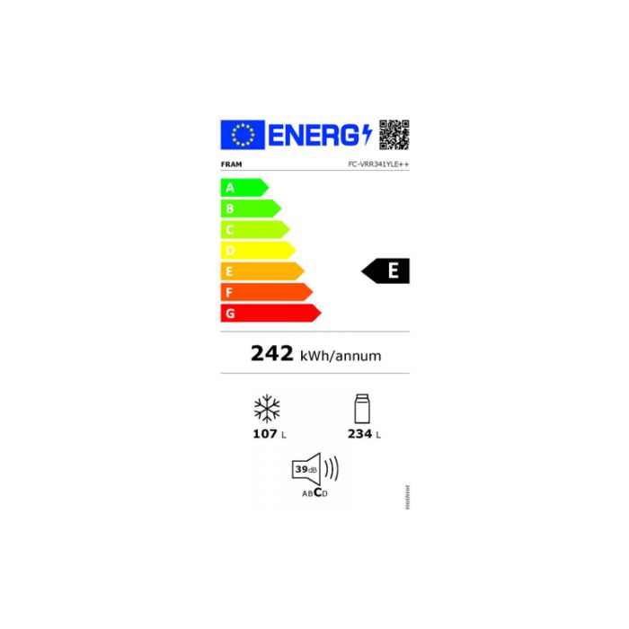 FRAM FC-VRR341YLE++ hladnjak zamrzivač, energetski razred: E, Less Frost sustav hlađenja, ukupni kapacitet: 340L, kapacitet hladnjaka: 233L, kapacitet zamrzivača: 107L, mehanička kontrola s podesivim termostatom, LED svjetlo, Quick Freeze funkcija, 3 staklene police hladnjaka, pretinac za voće i povrće s kontrolom vlažnosti, 3 ladice zamrzivača, držač za jaja, posuda za led, kapacitet zamrzavanja: 5,2 kg/24h, dimenzije (ŠxDxV): 60,5 x 68,1 x 190,1 cm, boja: žuta