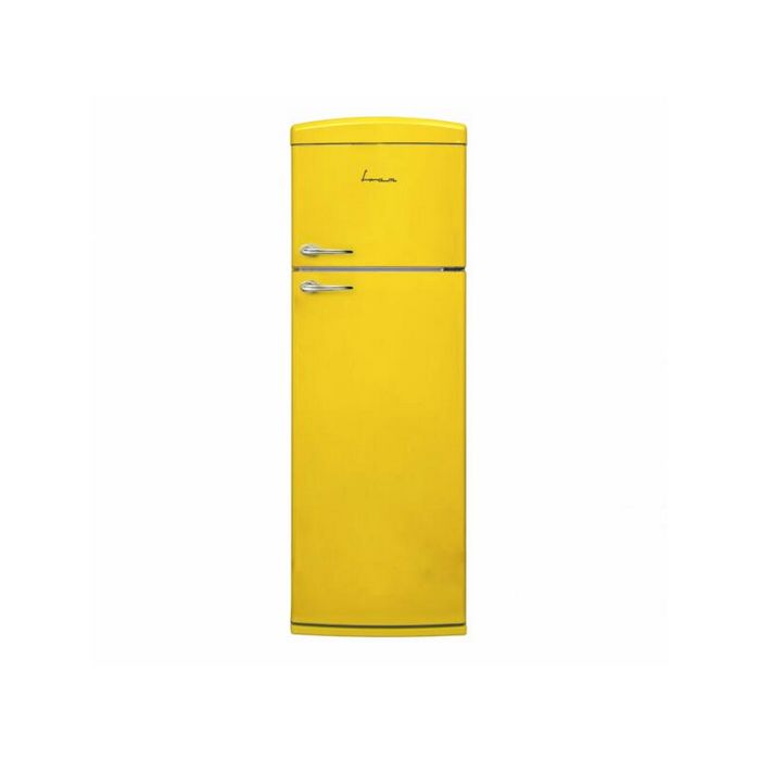 Hladnjak s dvoja vrata FRAM FDD-VRR311YLE++, energetski razred: E, ukupni kapacitet: 311L, kapacitet hladnjaka: 242L, kapacitet zamrzivača: 69L, mehanička kontrola s podesivim termostatom, LED svjetlo, 3 staklene police, pretinac za voće i povrće, podloga za jaja, posuda za led, kapacitet zamrzavanja: 4,5 kg/24h, dimenzije: 60,5 x 63,5 x 179,4 cm, boja: žuta