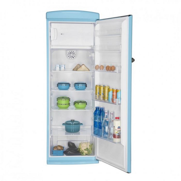 Opis proizvoda FRAM RETRO HLADNJAK FSD-VRR315BLF+ , 315 Litara (hladnjak 284 litara+ zamrzivač 31 litara ), F KLASA, LED SVJETLO, FUNKCIJA SUPER ZAMRZAVANJA, MEHANIČKA KONTROLA S PODESIVIM TERMOSTATOM, AUTOMATSKO ODMRZAVANJE, BOJA : PLAVA Visina 177 cm Širina 60,5 cm Dubina 63,5 cm