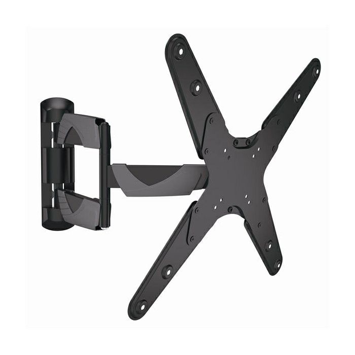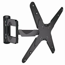 Univerzalni okretni / podesivi GoGEN zidni nosač za LED, LCD i plazma televizore za postavljanje idealnog kuta za udobno gledanje televizije. Nosač nudi brzu i jednostavnu montažu na zid. Samo jedna osoba može udobno postaviti televizor na postolje. Ima inteligentni sustav za fiksiranje televizora s VESA standardima do 400 x 400 mm i širokim rasponom pomicanja (rotirajuća 2x os +/- 180 ° + 1x zglob +/- 90 ° rotirajući, Y os do 15 ° nagiba, Z osi istiskivanja 45 do 508 mm). Dizajn držača testiran je za televizore dijagonale od 32" do 55" i težine do 35 kg. Izrađena je od kombinacije čvrstog čelika i aluminija, a zahvaljujući širokom rasponu kraka postići ćete minimalnu i maksimalnu udaljenost od zida od 45 do 508 mm Tehničke karakteristike: - za dijagonalu od 23" do 55 " (140 cm) - pogodan za: 75x75; 100x100; 200x200; 200x100; 300 x 300; 400 x 200; 400 x 300; 400x400 mm - udaljenost TV-a od zida 45-508 mm - opcija nagiba + 10° do -15° - mogućnost rotacije + 90° do -90° - maksimalna nosivost 35 kg - Crna boja - vodeni kamenac