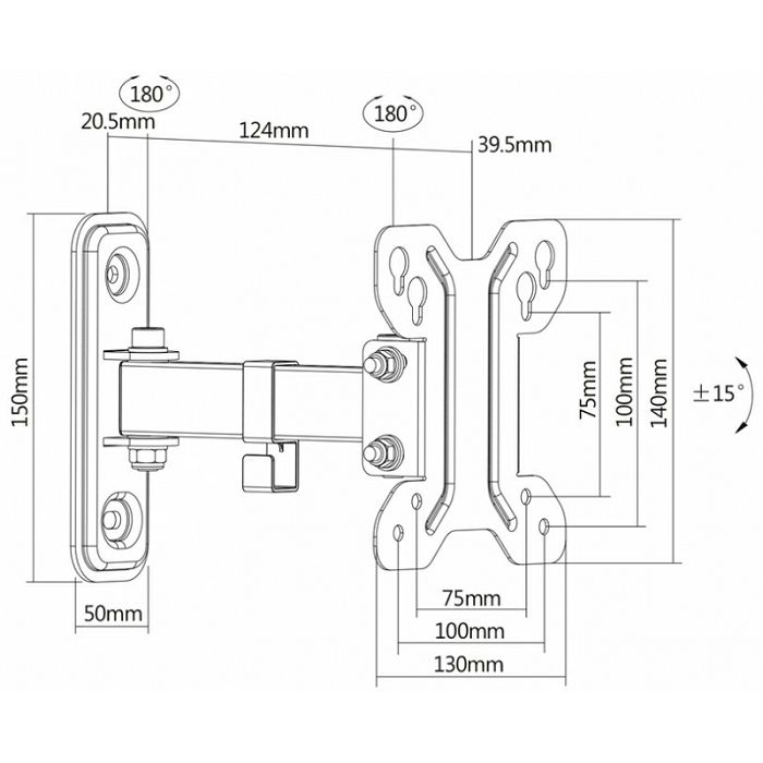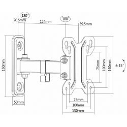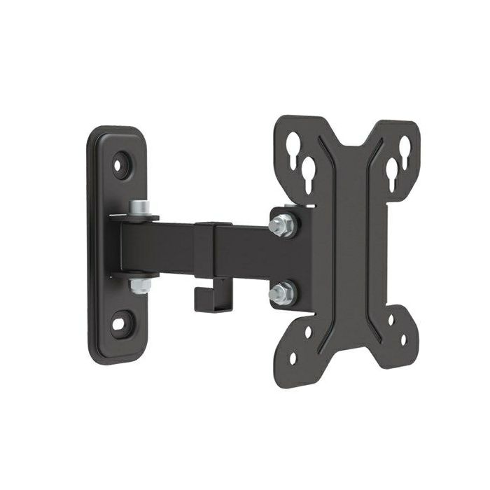 GoGEN univerzalni okretni / podesivi zidni nosač s podesivim kutom za udobno gledanje televizije. Nosač omogućuje brzu i jednostavnu montažu na zid zahvaljujući kompletnoj opremi. Prikladno za VESA do 100 X 100 mm i širok raspon kretanja: +/- 15 ° nagib, +/- 90 ° rotacija. Nosač se može pomicati od zida: 49 mm do 184 mm. Struktura konzole je prikladna za televizore dijagonale do 27" i težine do 30 kg. Tehničke značajke: - max. dijagonala 27" (68 cm) - razmak između rupa 75x75; 100x100 mm - mogućnost nagiba +15°C do -15°C - mogućnost rotacije + 90 ° do -90 ° C - Udaljenost televizora od zida 49-184 mm - nosivost 30 kg - metalni materijali - crne boje