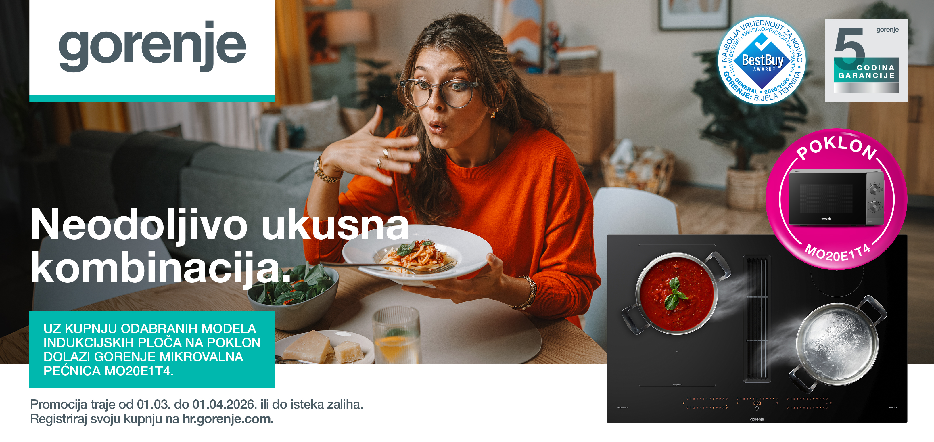 Uz kupnju odabranih modela Gorenje indukcijskih ploča nakon registracije putem obrasca na web stranici na poklon dolazi Gorenje mikrovalna pećnica MO20E1T4.