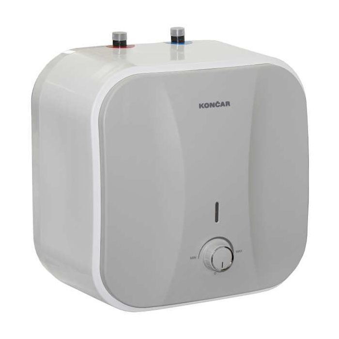 Končar EGV15P2RP Grijač vode Boja: bijela/siva Volumen: 15 l Jedno ili više odljevnih mjesta Pričvršćenje: okomito na zid – ISPOD izljevnog mjesta Broj osoba uz prosječnu uporabu: 1 Širina: 368mm Visina: 368mm Dubina: 40mm Razmak priključaka za ulaz/izlaz vode: 66mm Priključak na vodovodnu mrežu: 1/2” Masa praznog / s vodom: 9,6/24,6 kg Radni tlak: 7,5 bar Vanjski odabir temperature: hladno-75°C Kotao od čeličnog emajliranog lima Mg zaštitna anoda Signalno svjetlo – rad grijala Stupanj zaštite od vlage: IP 24 Nazivna snaga: 2000 W