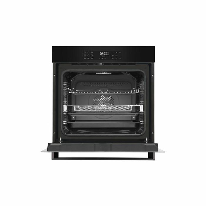 Vrsta proizvoda: Ugradbena električna pećnica Upravljanje zaslonom: Dodir Energetska klasa: A+ Volumen: 77 l Priključak za napajanje: 3,6 kW Napon: 220 V Zaslon: Da Broj programa: 19 (automatski) Broj načina kuhanja: 12 komada Halogena rasvjeta Zaključavanje zaslona Funkcija lagane pare Programer Maksimalna temperatura vanjskog stakla vrata pećnice: 70 °C Vrijeme zagrijavanja do 180 °C: 4 min Načini zagrijavanja Slabo zagrijavanje / (1000 W) Roštilj / (1500 W) Gornje + donje zagrijavanje Gornje zagrijavanje + Roštilj /(2400 W) Gornje + donje zagrijavanje /(1900 W) zagrijavanje + Donje grijanje /(3100 W) Kružno grijanje /(2100 W) Eko Kružno grijanje /(2100 W) Lagana para + Kružno grijanje /(2400 W) Vrsta čišćenja unutarnje površine: Katalitičko Broj stakala na vratima: 3 komada Maksimalna temperatura: 280 °C Duljina kabela za napajanje: 1,3 m Boja ručke: Crna Težina: 34,15 kg Boja: Crna