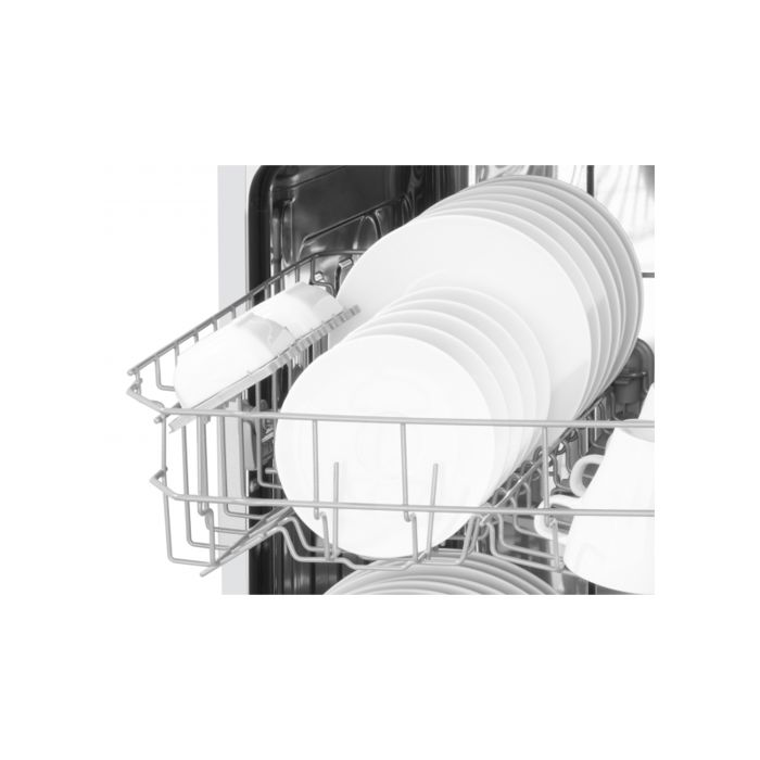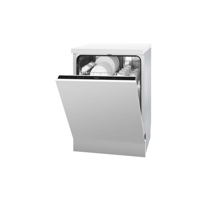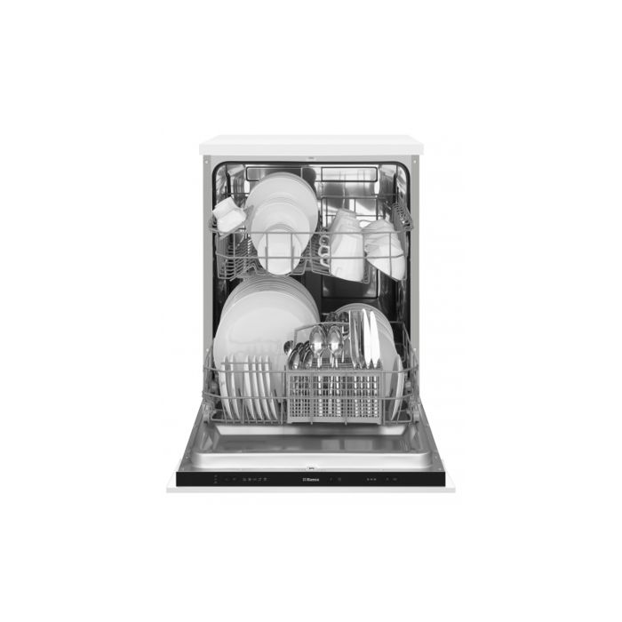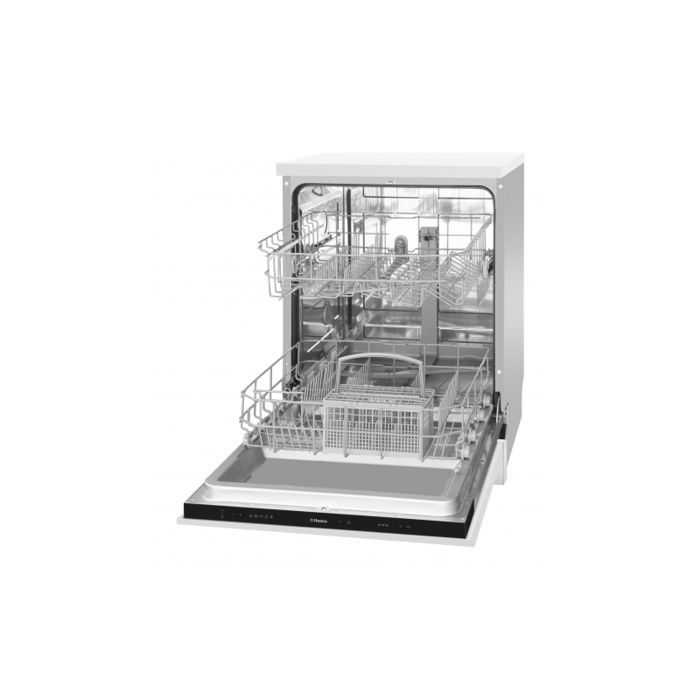 Hansa ZIM635PHUgradbena perilica posuđa širine 60 cm Energetski razred: E Kapacitet: 12 kompleta posuđa Razina buke: 49 dB Potrošnja energije: 0,9 kWh Potrošnja vode: 11 l Programi pranja (5): Intenzivni program – 70 °C Brzi program 30 min – 55 °C Eco program – 45 °C Program 60 min – 60 °C Samočišćenje (Self-cleaning) 145 min – 70 °C Značajke i funkcije: Potpuno integrirana upravljačka ploča Funkcija pola punjenja Odgoda početka: 3 / 6 / 9 h Svjetlosni indikator nedostatka sredstva za sjaj Indikator nedostatka soli Sustav sušenja toplim zrakom Košara za pribor za jelo