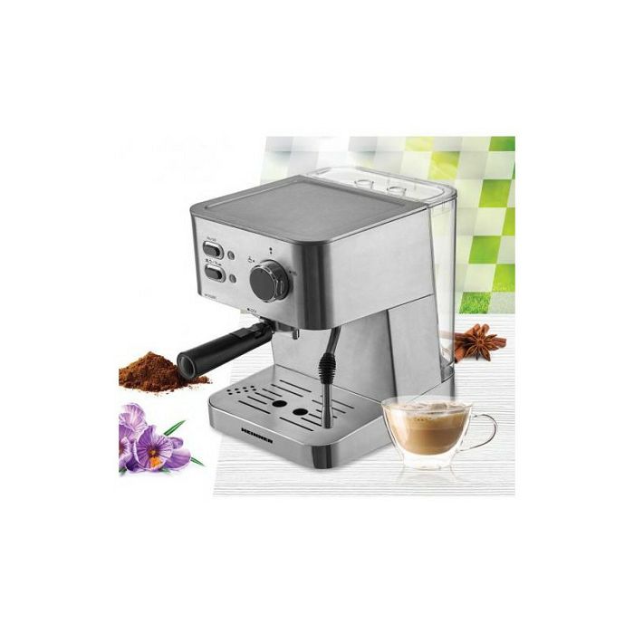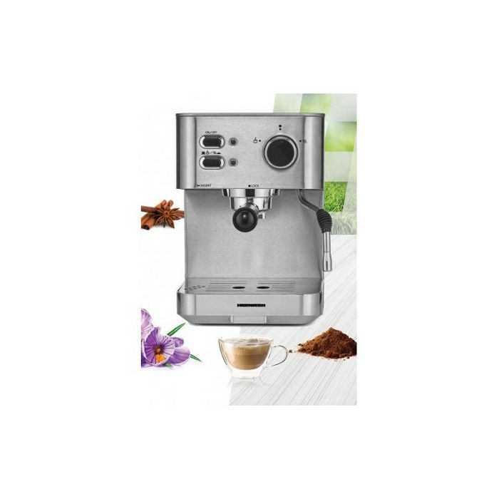 Glavne karakteristike 20 bar tlačna pumpa Topla ploča za održavanje Odvojivi spremnik vode: 1.5L Karakteristike Dvostruki filter od nehrđajućeg čelika Opcije: mlijeko za espresso i pjenasto mlijeko Zaštita od pregrijavanja Sigurnosni ventil nadtlaka Kućište od nehrđajućeg čelika Uklonjiva ladica za kapljanje Tehnički podaci Snaga: 1050W Napon: 220-240V ~ 50Hz Za espresso aparate preporuka je koristiti srednje fino mljevenu kavu ! Fino ili ekstra fino mljevena kava može začepiti čeličnu mrežicu od aparata.