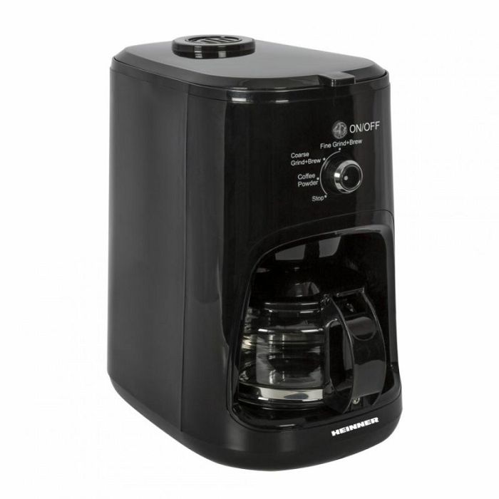 Aparat za kavu Heinner HCM-900RBK s mlincem, snaga: 900 W, kapacitet: 0,6 l, kapacitet mljevene kave: 36 g, perivi i uklonjivi filter, uklonjivi držač filtera, uklonjivi spremnik za vodu, oštrice mlina od nehrđajućeg čelika, podešavanje mljevenja: fino i grubo mljevenje, proces mljevenja: 20-30 sekundi, spremnik za vodu otporan na visoke temperature