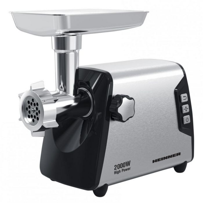 Heinner Blade Pro HMG-Y2000SS aparat za mljevenje mesa, maksimalna snaga: 2000W, metalni zupčanik i aluminijsko kućište, funkcija obrnutog kretanja, nož od nehrđajućeg čelika, 3 metalna sita, pribor za kobasice, gumb prekidača s 2 brzine, kapacitet sjeckanja: ~ 3kg / min, kućište od nehrđajućeg čelika