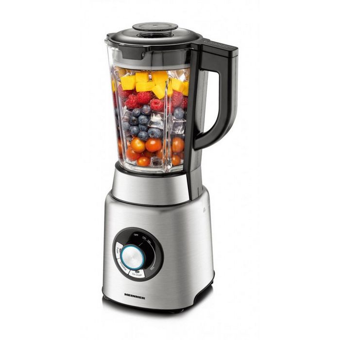 Heinner blender Master Collection HBL-1200XMC snaga: 1200W 20000 o / min poseban sustav zaključavanja kapacitet staklene posude od 1,7 L 6 lopatica od nehrđajućeg čelika gumb s LED indikatorom pulsna funkcija funkcije: smoothie i drobljenje leda baza od nehrđajućeg čelika zaštita od pregrijavanja protuklizne noge razina buke: <80dB