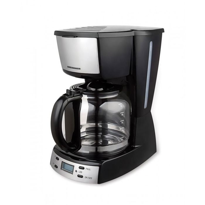 Heinner HCM-D918X digitalni aparat za kavu, LCD zaslon, snaga: 900W, kapacitet: 1,8 L, elektronička kontrola, tajmer, zaslon sata, funkcija vrućeg čuvanja, automatsko isključivanje nakon 40 minuta, mehanizam protiv kapanja, protuklizna stopala, uklonjiva potpora filtra, boja: crna s ukrasima od nehrđajućeg čelika Specifikacije proizvoda Neto dimenzije Visina 31,1 cm Širina 18,4 cm Dubina 29,5 cm Težina 1,39 kg