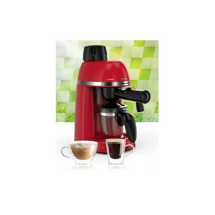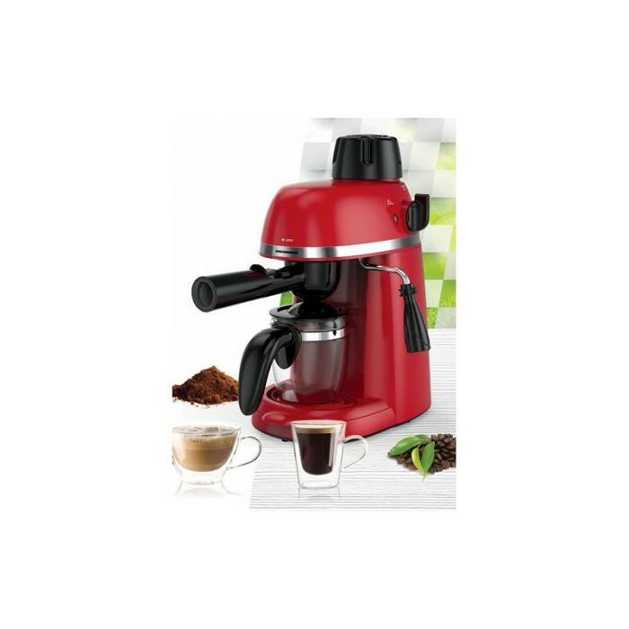 Tlak od 3,5 bara Filter od nehrđajućeg čelika Kapacitet: 240 ml Karakteristike Kotao od legure aluminija Opcije : espresso i cappuccino Staklena vrč Tehnički podaci Snaga: 800W Napon: 220-240 ~ 50-60Hz Za espresso aparate preporuka je koristiti srednje fino mljevenu kavu ! Fino ili ekstra fino mljevena kava može začepiti čeličnu mrežicu od aparata.