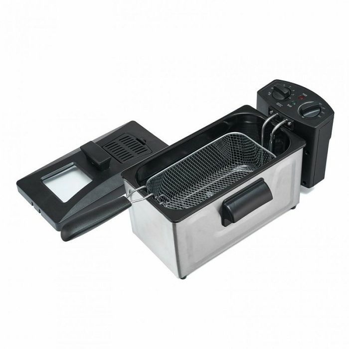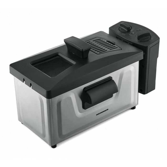 Friteza HEINNER HDF-1800SS Snaga: 1800W Kapacitet ulja od 3L Maksimalni kapacitet za krumpir 500g Tajmer 30 min Podesivi thermostat Emajlirani spremnik ulja Maksimalna temperatura 190 °C Kućište od nehrđajućeg čelika Indikatorsko svjetlo