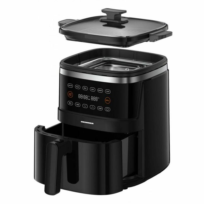HEINNER VastCook HAFG-B5BK2600 FRITEZA NA VRUĆI ZRAK I ROŠTILJ, 2600 W, KAPACITET KOŠARE: 5 L, DIGITALNI ZASLON, TEMPERATURA: 80-200 °C, TAJMER: 60 MIN, 6 UNAPRIJED POSTAVLJENIH PROGRAMA, UKLONJIVA KOŠARA I POSUDA ZA ROŠTILJ, AUTOMATSKO ZAUSTAVLJANJE, CRNA