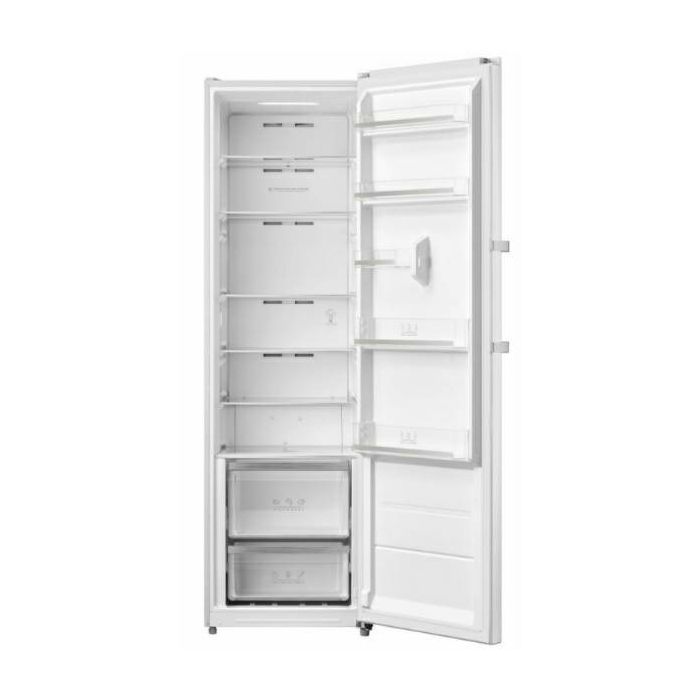 Heinner HF-M362NFE++ hladnjak, ukupni kapacitet 362L, No Frost, energetska klasa učinkovitosti E, zaslon, elektroničko upravljanje, funkcija super hlađenja, alarm otvorenih vrata, LED svjetlo, 5 staklenih polica, 2 ladice za voće i povrće, dimenzije: 59,5 x 61,8 x 185 cm, Boja: Bijela