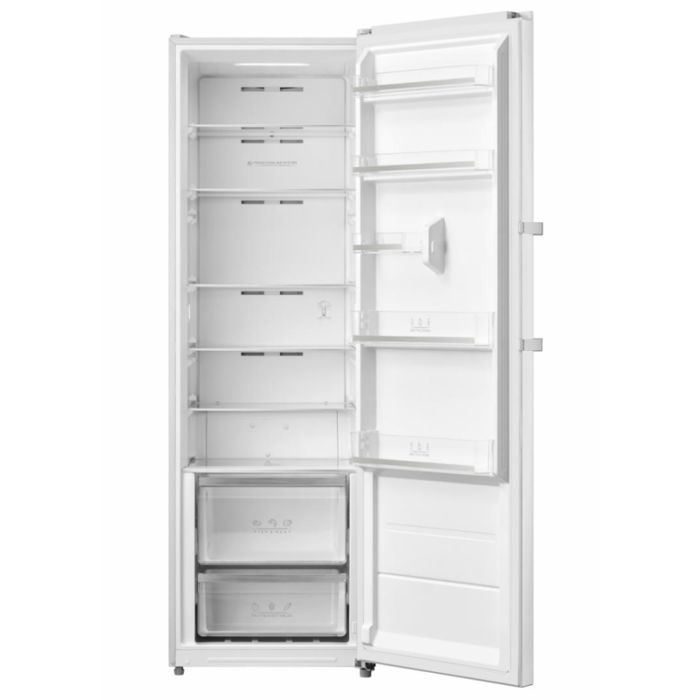 Heinner HF-M362NFE++ hladnjak, ukupni kapacitet 362L, No Frost, energetska klasa učinkovitosti E, zaslon, elektroničko upravljanje, funkcija super hlađenja, alarm otvorenih vrata, LED svjetlo, 5 staklenih polica, 2 ladice za voće i povrće, dimenzije: 59,5 x 61,8 x 185 cm, Boja: Bijela