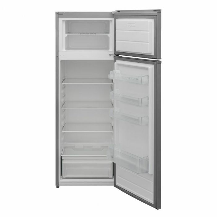 Heinner HF-V240SF+ hladnjak s dvoja vrata, energetski razred: F, Manje mraza rashladni sustav, ukupni kapacitet: 242L, kapacitet hladnjaka: 201L, kapacitet zamrzivača: 41L, mehanička kontrola s podesivim termostatom, LED svjetlo, funkcija brzog zamrzavanja, 3 staklene police hladnjaka, odjeljak od voća i povrća, reverzibilna vrata, nosač jaja, pladanj za kockice leda, kapacitet smrzavanja: 2,6 kg / 24h, dimenzije (ŠxDxV): 54 x 57 x 160 cm, reverzibilna vrata, ručka s kromiranim ukrasom, boja: Srebro Neto dimenzije Težina 40,50 kg Visina 160,00 cm Širina 54,00 cm Dubina 57,00 cm Opće specifikacije Dozator vode Ne Vrsta prikaza Ne Vrsta hladnjaka Standard Broj vrata 2 Sustav odmrzavanja hladnjaka Automatski Boja Srebro Energetski razred F Volumen zamrzivača 41 l Funkcije proizvoda Funkcija super zamrzavanja Vrsta hlađenja Manje mraza Volumen hladnjaka 201 L Ukupni volumen 242 l