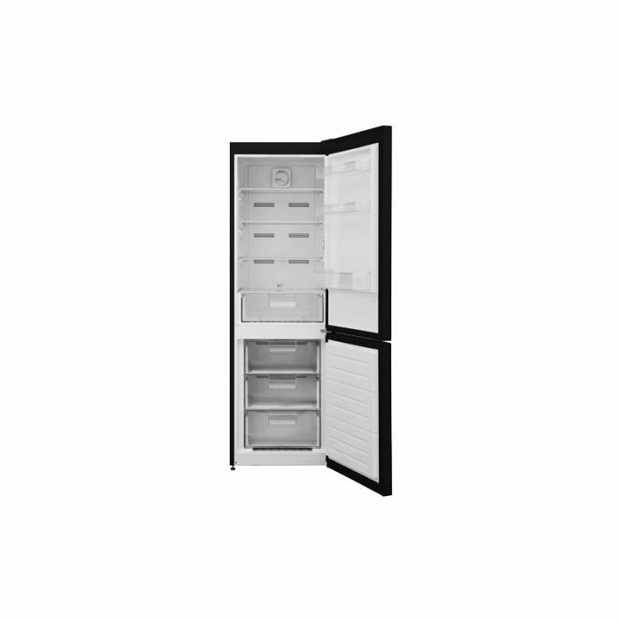 Hladnjak Heinner HCNF-V291BKE++, No Frost Multicooling, energetski razred E, ukupni kapacitet: 294 L, kapacitet hladnjaka: 207 L, kapacitet zamrzivača: 87 L, elektronička kontrola s unutarnjim zaslonom, Freezer Shield tehnologija, LED svjetlo, ECO funkcija, Quick Freeze funkcija, alarm otvorenih vrata, 3 staklene police hladnjaka, preklopni odjeljak (chiller/voće i povrće), 3 ladice za zamrzavanje, držač za jaja, pladanj kocke leda, kapacitet zamrzavanja: 5 kg/24h, dimenzije (ŠxDxV): 59,5 x 60 x 186 cm, boja: crna s kromiranim ukrasom na ručki