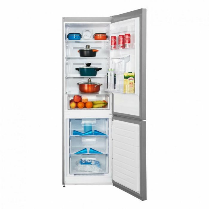 Heinner HCNF-V291SWDE++ kombinirani hladnjak, bez mraza Multicooling, dozator vode, Energetski razred E, Ukupni kapacitet: 294 L, Kapacitet hladnjaka: 207 L, Kapacitet zamrzivača: 87 L, Elektroničko upravljanje s unutarnjim zaslonom, Tehnologija štita za zamrzavanje (Radovi na temperaturama do -15⁰C), LED svjetlo, ECO funkcija, Funkcija brzog zamrzavanja, alarm otvorenih vrata, 3 staklene police hladnjaka, Kabriolet pretinac (hladnjak/ voće i povrće), 3 ladice za zamrzavanje, držač jaja, pladanj za kockice leda, Kapacitet smrzavanja: 5 kg / 24h, Dimenzije (ŠxDxV): 59,5 x 60 x 186 cm, Boja: srebro s kromiranim ukrasom na ručki