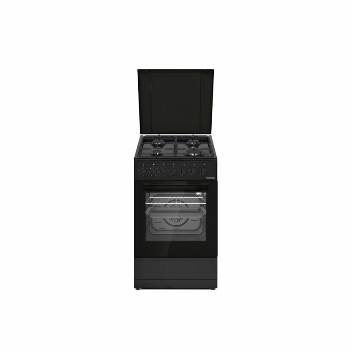HEINNER HFSC-S60LITGC-BK KOMBINIRANI ŠTEDNJAK, 50X60CM, 4 PLAMENIKA, EMAJLIRANI POKLOPAC, METALNI POKLOPAC, SIGURNOSNI UREĐAJ ZA KUHANJE, ELEKTRIČNA PEĆNICA, KLASA A, 6 FUNKCIJA, TAJMER, ROŠTILJ, VENTILACIJA, SVJETLO PEĆNICE, VRATA PEĆNICE S UKLONJIVIM DVOSTRUKIM STAKLOM, DONJA LADICA ZA POSUĐE, UKLJUČENE MLAZNICE ZA LPG, KROMIRANA POSUDA I REŠETKA, DIMENZIJE (DxŠxV): 49,8x61x86 CM, BOJA: CRNA
