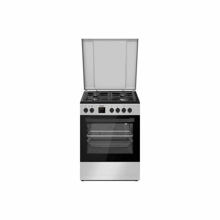 HEINNER HFSC-S66FDC-BIX ŠTEDNJAK, 60X60CM, 4 PLAMENIKA, NOSAČ OD LIJEVANOG ŽELJEZA, METALNI POKLOPAC, ELEKTRIČNO PALJENJE PLOČE ZA KUHANJE, SIGURNOSNI UREĐAJ ZA KUHANJE, ELEKTRIČNA PEĆNICA, 6 FUNKCIJA, DIGITALNI TAJMER, ROŠTILJ, VENTILACIJA, SVJETLO PEĆNICE, VRATA PEĆNICE S DVOSTRUKIM UKLONJIVIM STAKLOM, UKLJUČENE MLAZNICE ZA LPG, KROMIRANA POSUDA I ROŠTILJ, DIMENZIJE (DxŠxV): 60x60x83 CM, BOJA: NEHRĐAJUĆI ČELIK