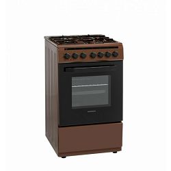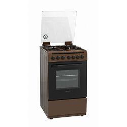 Kombinirani štednjak Heinner HFSC-V60LITGC-BRW, 50x60cm, 4 plamenika, držač cakline, stakleni poklopac, električna ploča za paljenje, ploča za sigurnosne uređaje, električna pećnica, 6 funkcija, tajmer, roštilj, ventilacija, odmrzavanje, svjetlo pećnice, dvostruko odvojiva staklena vrata pećnice, uključene mlaznice UNP-a, pladanj i kromirani roštilj, dimenzije (DxAxI): 50x60x85 cm, boja: smeđa