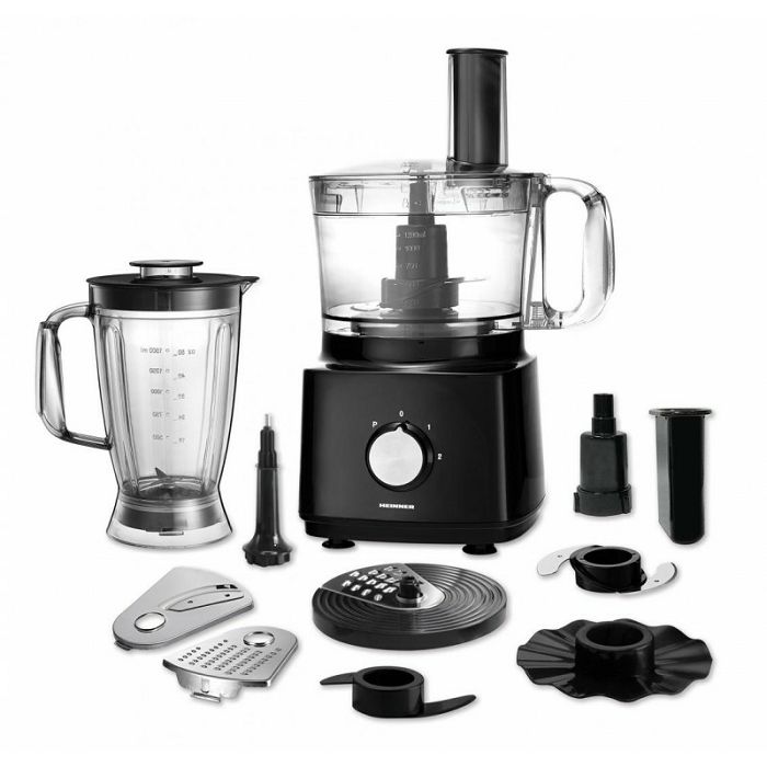 Kuhinjski robot Heinner HFP-750BK, snaga: 750W, 2 brzine + Pulse, kapacitet posude za obradu: 1.2L, kapacitet miješalice: 1.8L, pribor za rezanje, usitnjavanje, maslac i francuski krumpir, sigurnosni sustav dvostrukog zaključavanja, protuklizni sustav, razina buke: 85dB