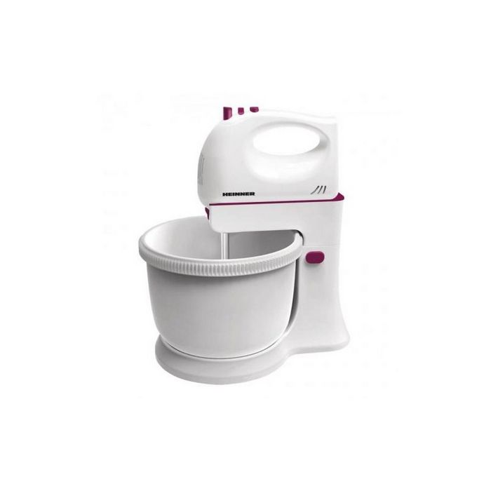 Glavne karakteristike 2.5L okretna zdjela Snaga od 300 W 5 brzina + Turbo Karakteristike Priloženi pribor: 2 kuke i 2 kuke za tijesto od nehrđajućeg čelika Gumb za izbacivanje sa sigurnosnim uređajem Gumb za otpuštanje ručnog miksera Boja: bordo Tehnički podaci Snaga: 300W Napon: 2204-240V, 50-60Hz Razina buke: < 85dB