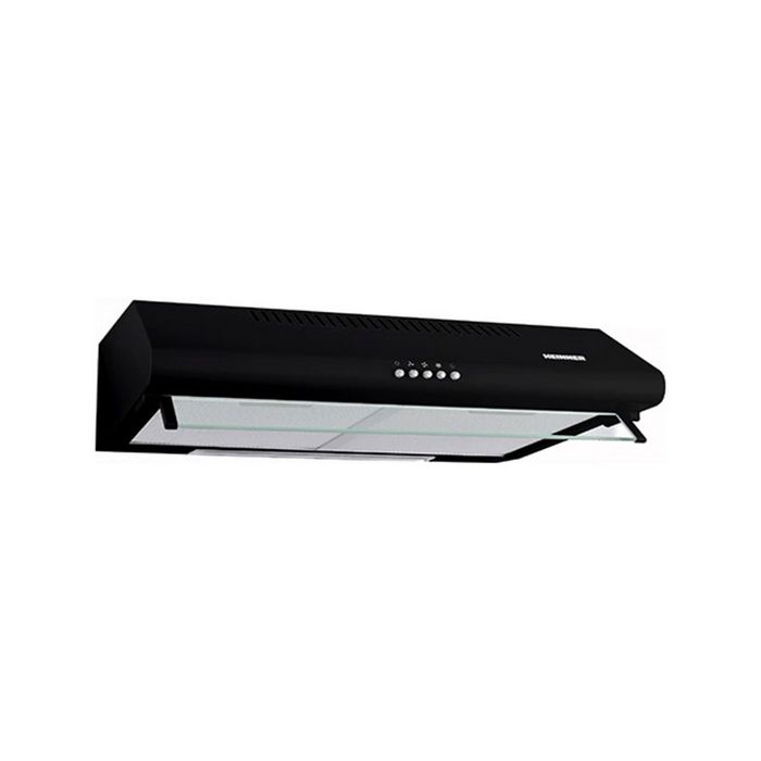 Heinner napa CH-400-BK , 60 cm, Maksimalna snaga apsorpcije: 326,4 m3/ h, 3 stupnja prijenosa, Motor: 2 x 60W, LED svjetlo: 1 x 2W, 2 aluminijska filtra, Prednja staklena ploča, Tipke za pritiskanje, Promjer ispušne cijevi: 120 mm, Dimenzije: 60x50x15 cm, Boja: Crna