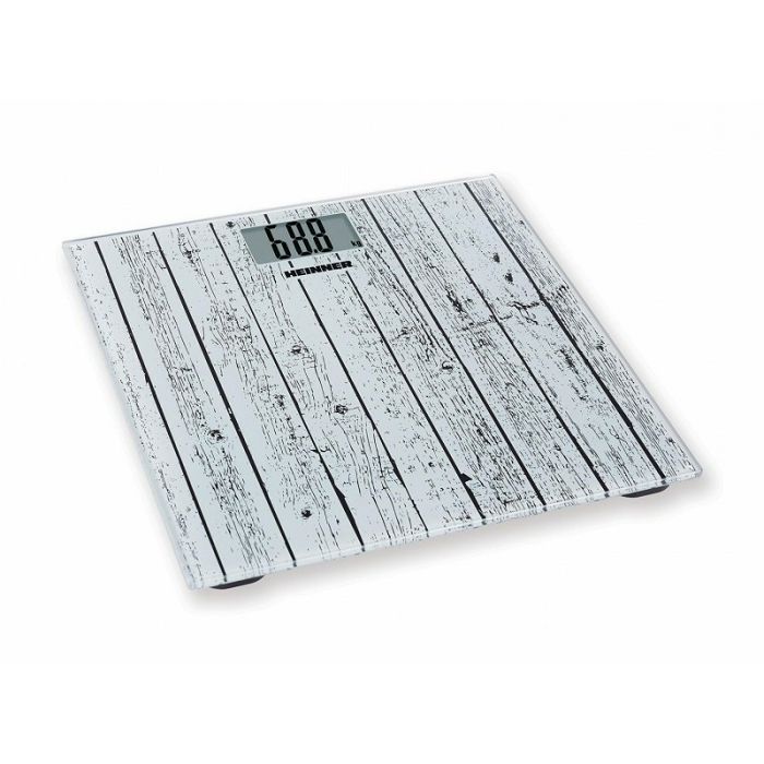 Heinner osobna vaga White Wood 150, HBS-150WHP, 6 mm sigurna staklena platforma, maksimalni kapacitet: 150kg, LCD zaslon, gradacija: 100g, automatsko pokretanje / zaustavljanje, indikator baterije, indikator prekoračenja težine, uključena baterija: 1 x CR2032 Li