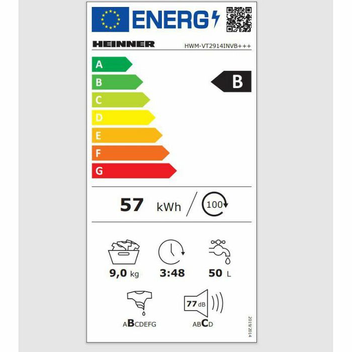 Automatska perilica rublja Heinner HWM-VT2914INVB+++, Kapacitet punjenja 9 kg, Brzina centrifuge 1400 o/min, Klasa energetske učinkovitosti B, Inverter motor, 15 programa, LED zaslon, Brzi program 15 min, Brzi program 60 min, Odgođeni start, Funkcija dodatnog ispiranja, Jednostavno glačanje, Eco logic sustav, Sustav detekcije pjene, Sustav kontrole ravnoteže, Dječja brava, Dimenzije (ŠxDxV): 59,7x58,2x84,5 cm, Boja: Bijela